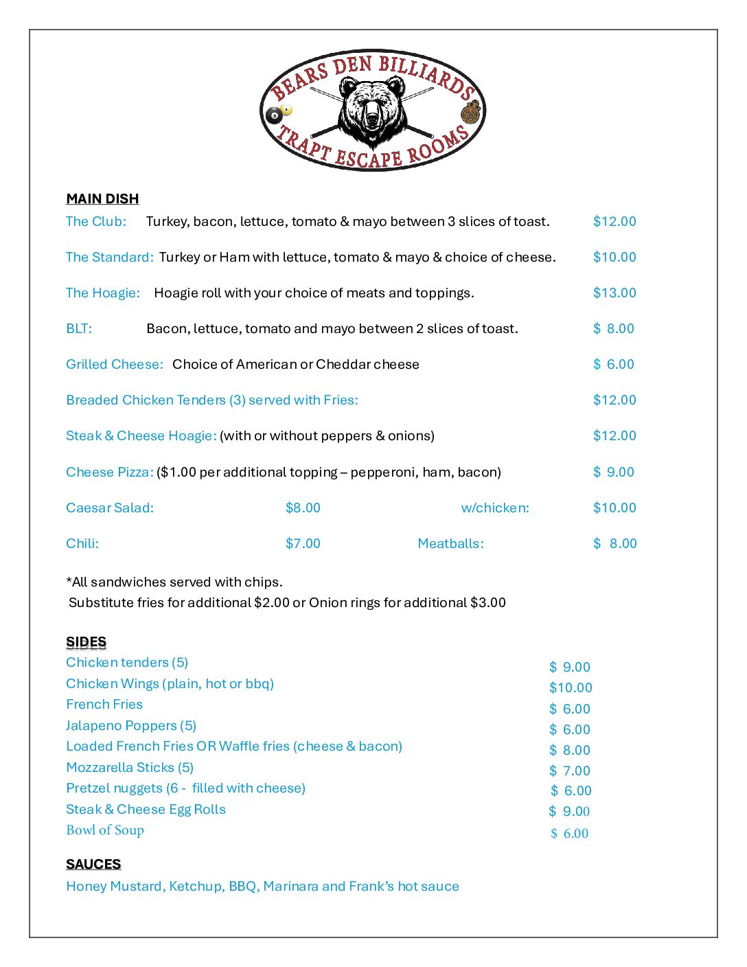 *Available to those over the age of 21, a valid driver’s license or state ID is mandatory for all adult beverages